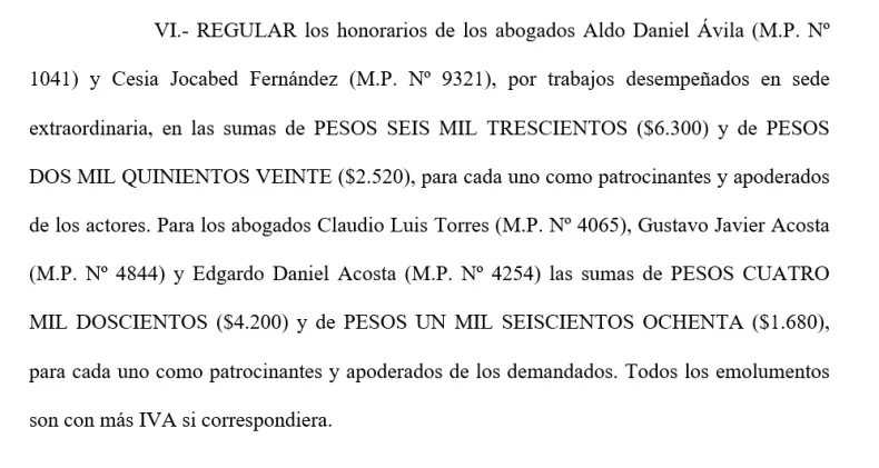 Volvamos. Por el recurso extraordinario de inconstitucionalidad se determinó como honorarios $ 6.300 como patrocinante y $ 2.520 como apoderado. Casi, casi, llego al kilo de helado. Pero no.